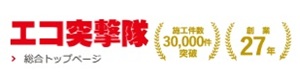 「エコ突撃隊」は創業から27年にわたり、エコキュートやオール電化製品の設置・交換に携わり、累計施工件数が30,000件を突破している点が特徴です。